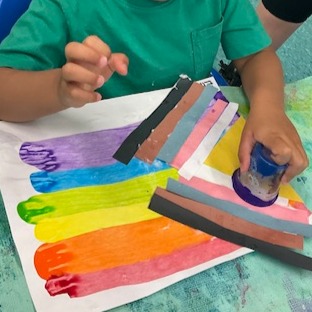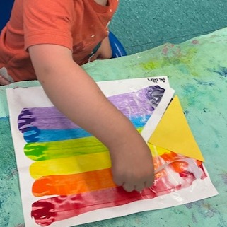 Preschoolers learned about Pride Month through stories, creative art, and putting their knowledge into action. They read a book called "Pride Puppy" detailing a family's fun day out as they walk through the Pride Parade, but their puppy gets loose and ends up in the parade too! After creating Pride Flag-inspired art, the preschoolers held their own Pride Parade outside to demonstrate the importance of sticking together, respecting everyone and standing up for what's right.
